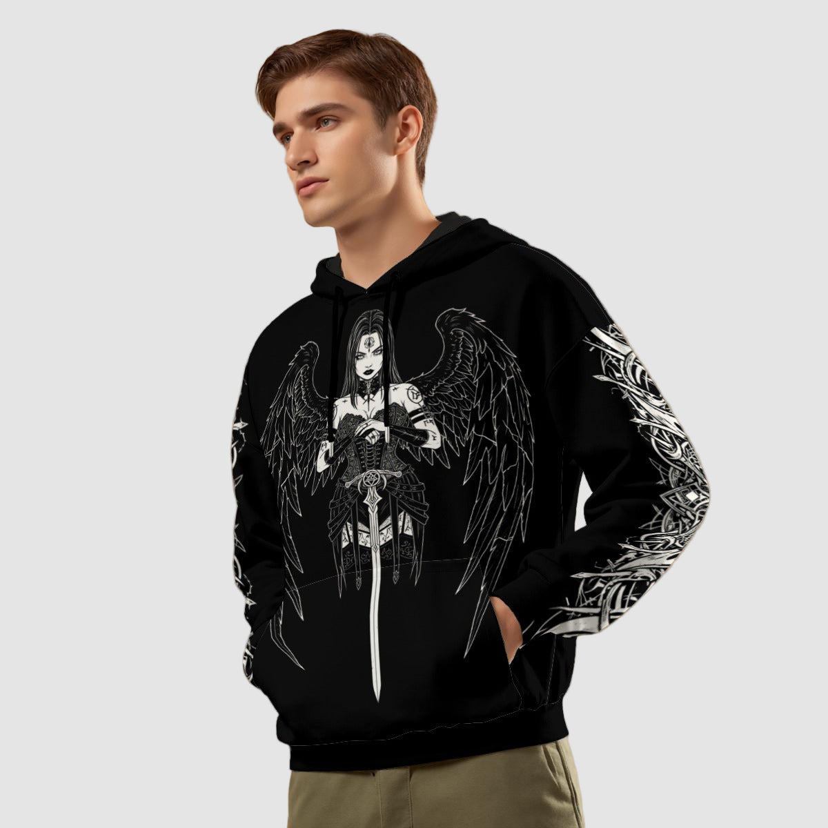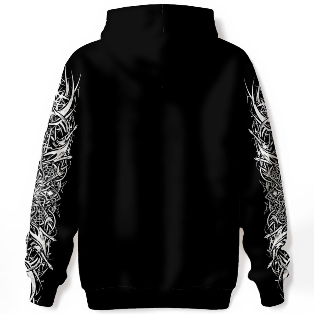 - Lång ärm, öglad insida, med dragsko, ficka fram
