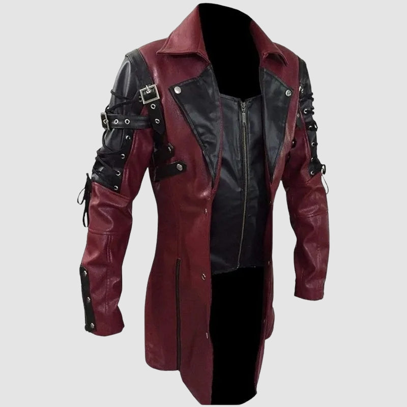Läderpunk jacka i post-apokalyptisk stil med remmar och blixtlås