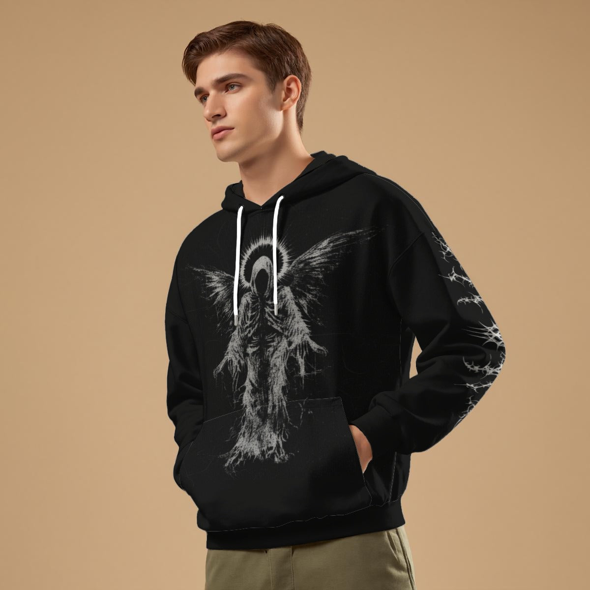 - Lång ärm, öglad insida, med dragsko, känguruficka