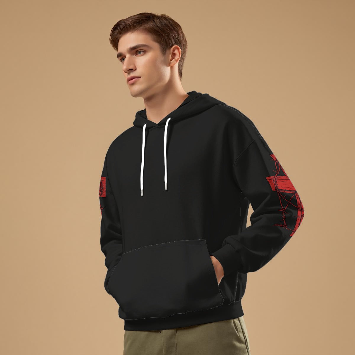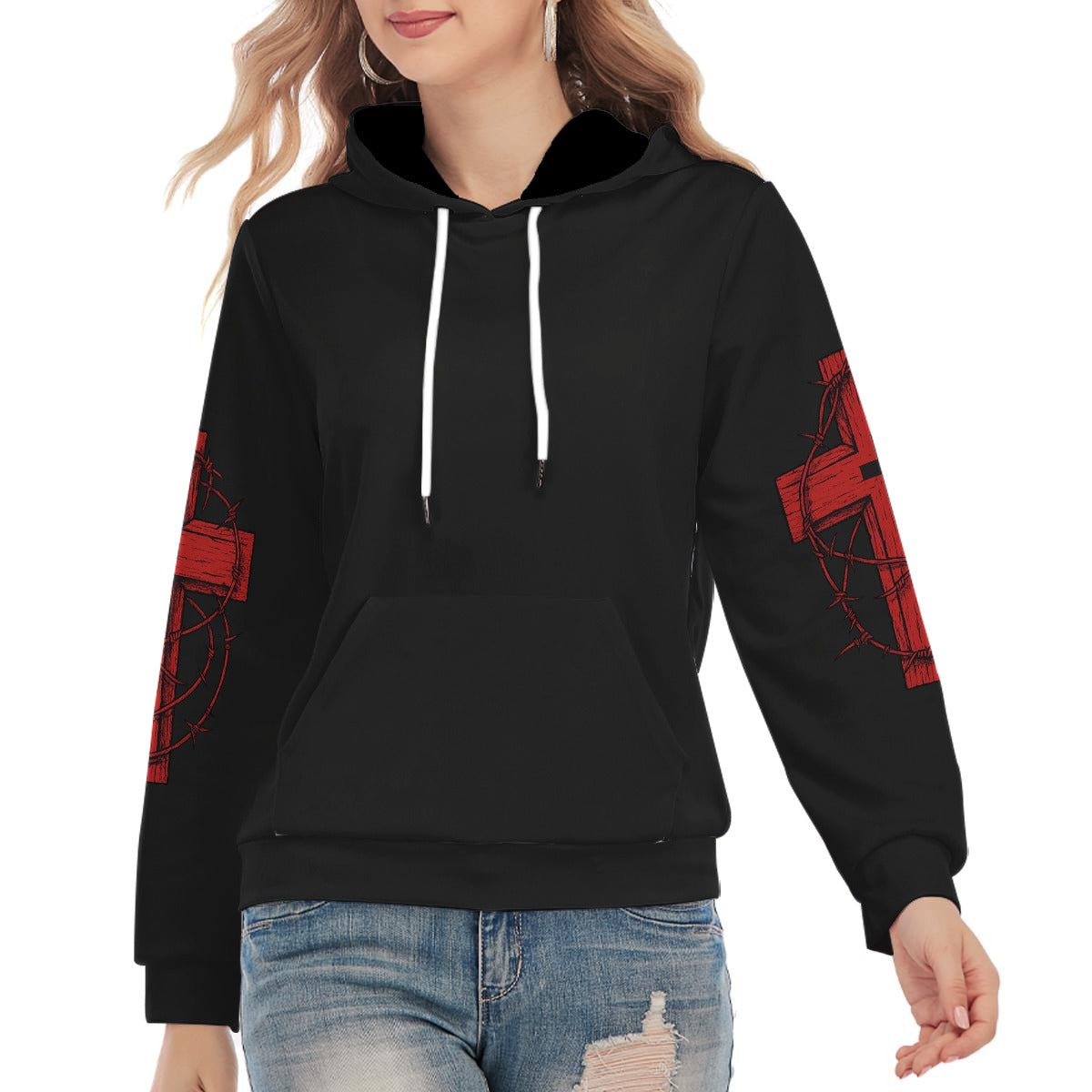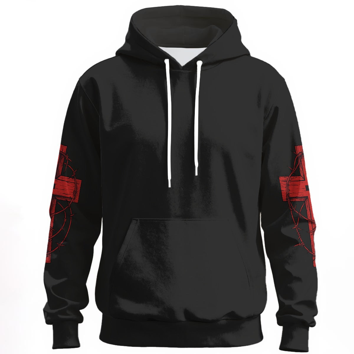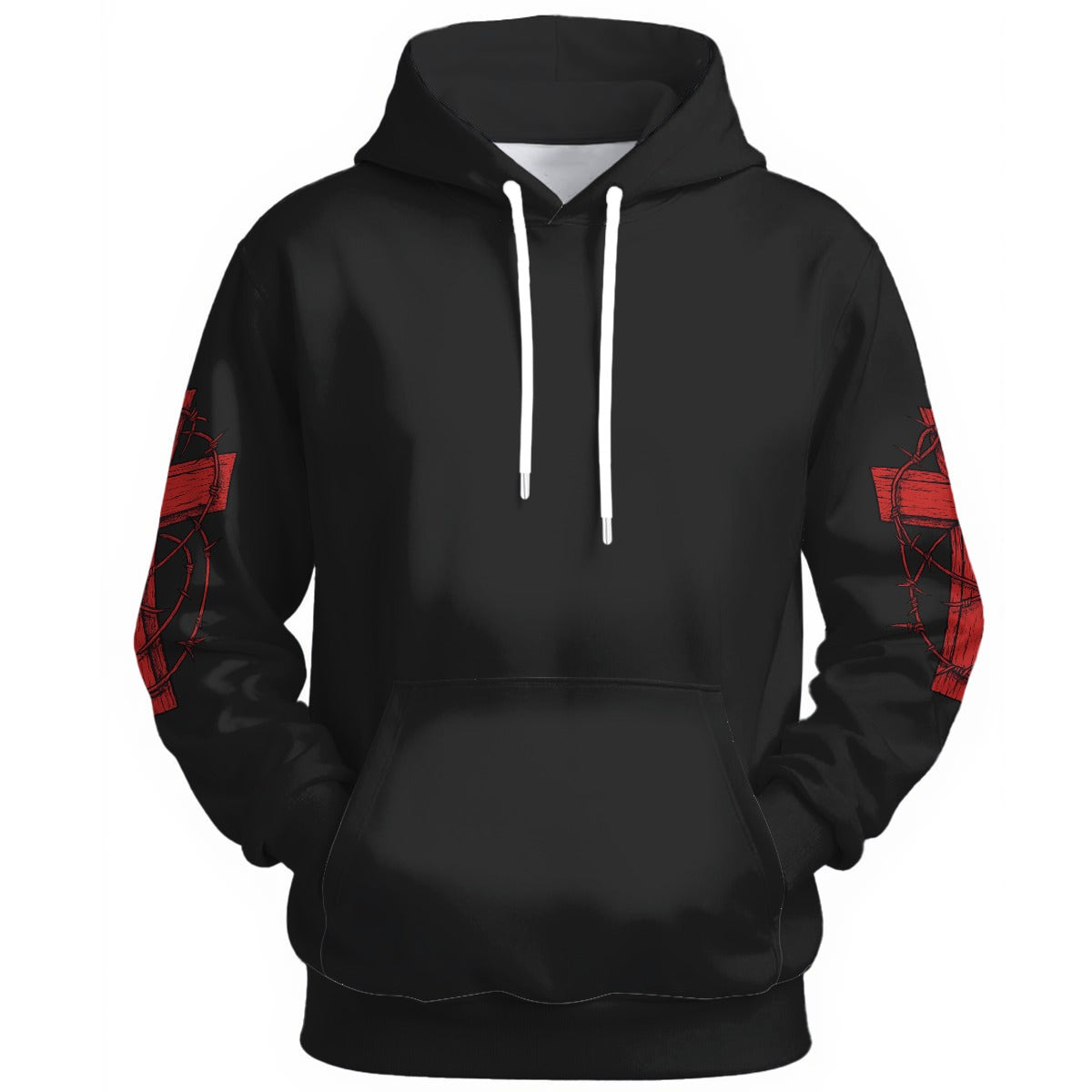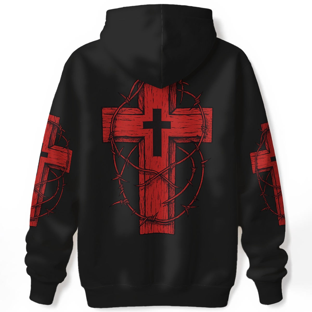 Svart hoodie med rött kors på ryggen och törnekrona gotiskt motiv